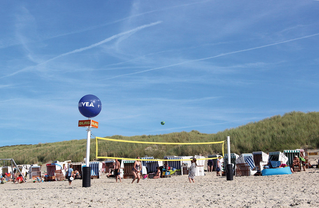Hier können Sie sich so richtig auspowern. Das Volleyballfeld ist frei zugänglich und kann auch spontan für ein Spielchen genutzt werden. Wer keinen Ball dabei hat kann bei den ehrenamtlichen Rettungsschwimmern der Deutschen Lebensrettungsgesellschaft DLRG, die von Mai bis Oktober ihren Posten am Strand beziehen, einen Ball ausleihen.