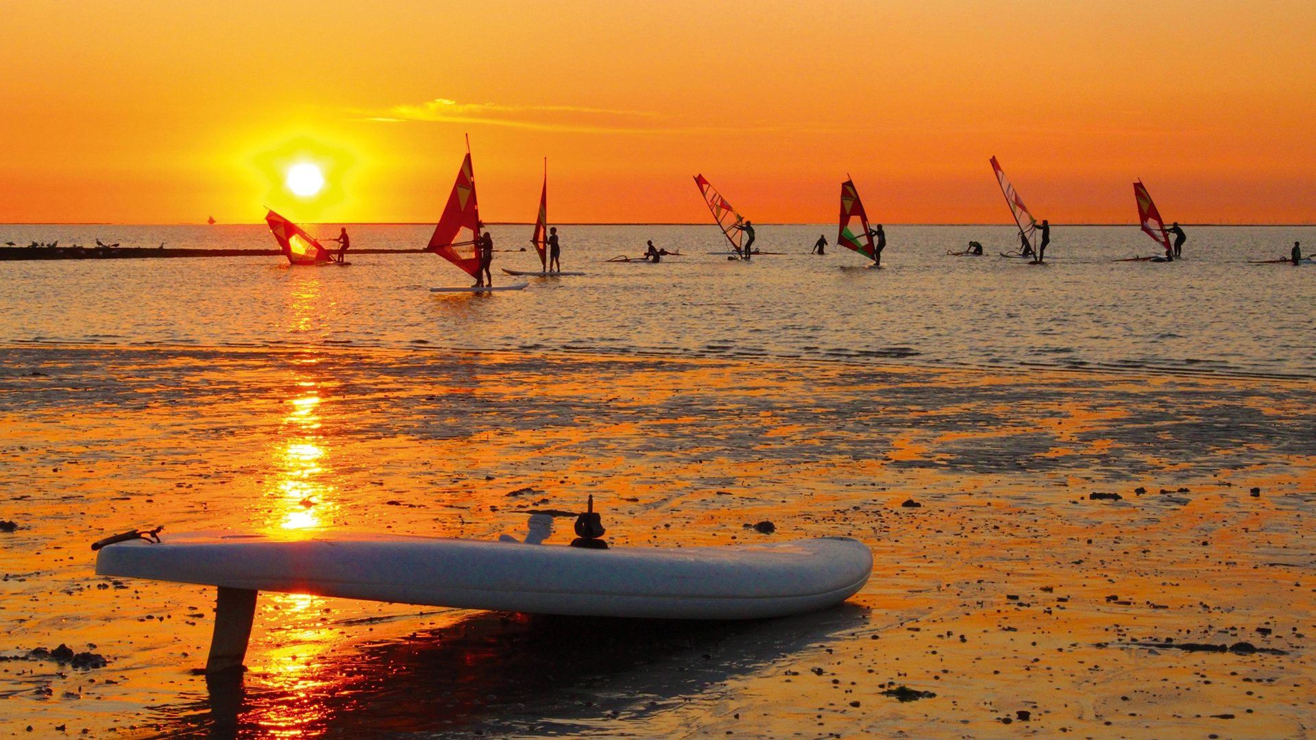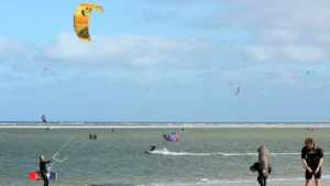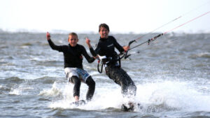 Die begeisterten Freunde dieses Trendsports lieben das abwechslungsreiche Kiterevier, das bei Niedrigwasser mit ruhigen Flachwasserzonen für den Schulungsbetrieb und bei Hochwasser eine Brandungszone aufweist, die keine Wünsche offen lässt.