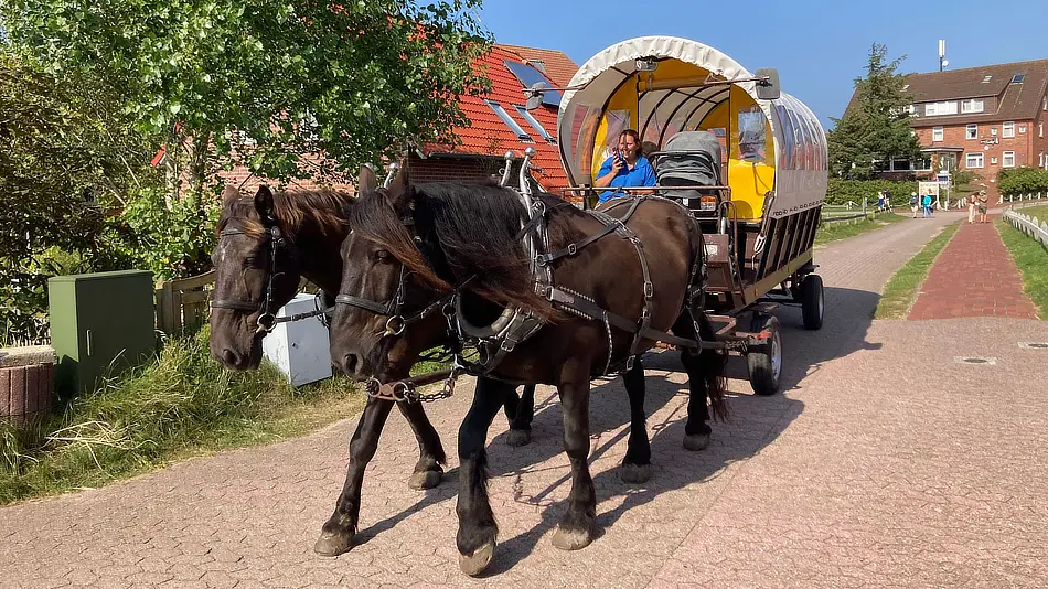 Aber auch für Fahrten vom Hafen zur Unterkunft und zurück stehen die Kutschbetriebe bereit. Vor allem die betagteren Inselgäste sind dankbar für den fahrbaren Untersatz mit den lebendige Pferdestärken.